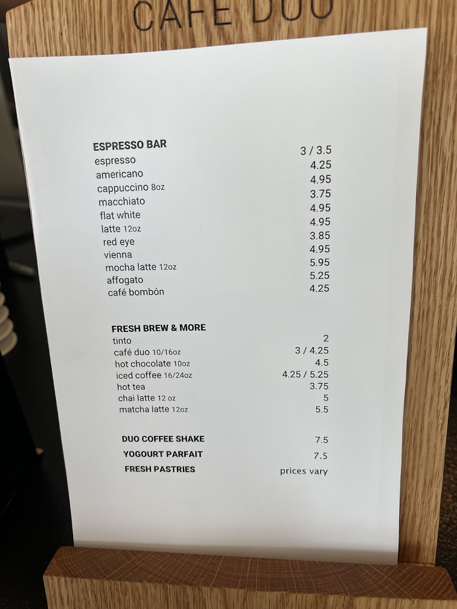 Located at 155 Greenwood Ave in Bethel, CT, Café Duo presents an inviting menu that celebrates the art of coffee and pastries. This charming café features an espresso bar offering a range of expertly crafted beverages, from classic Espresso at $3 to the indulgent Mocha Latte at $5.95. Coffee enthusiasts can savor treats like the Affogato or a hearty Café Bombon.